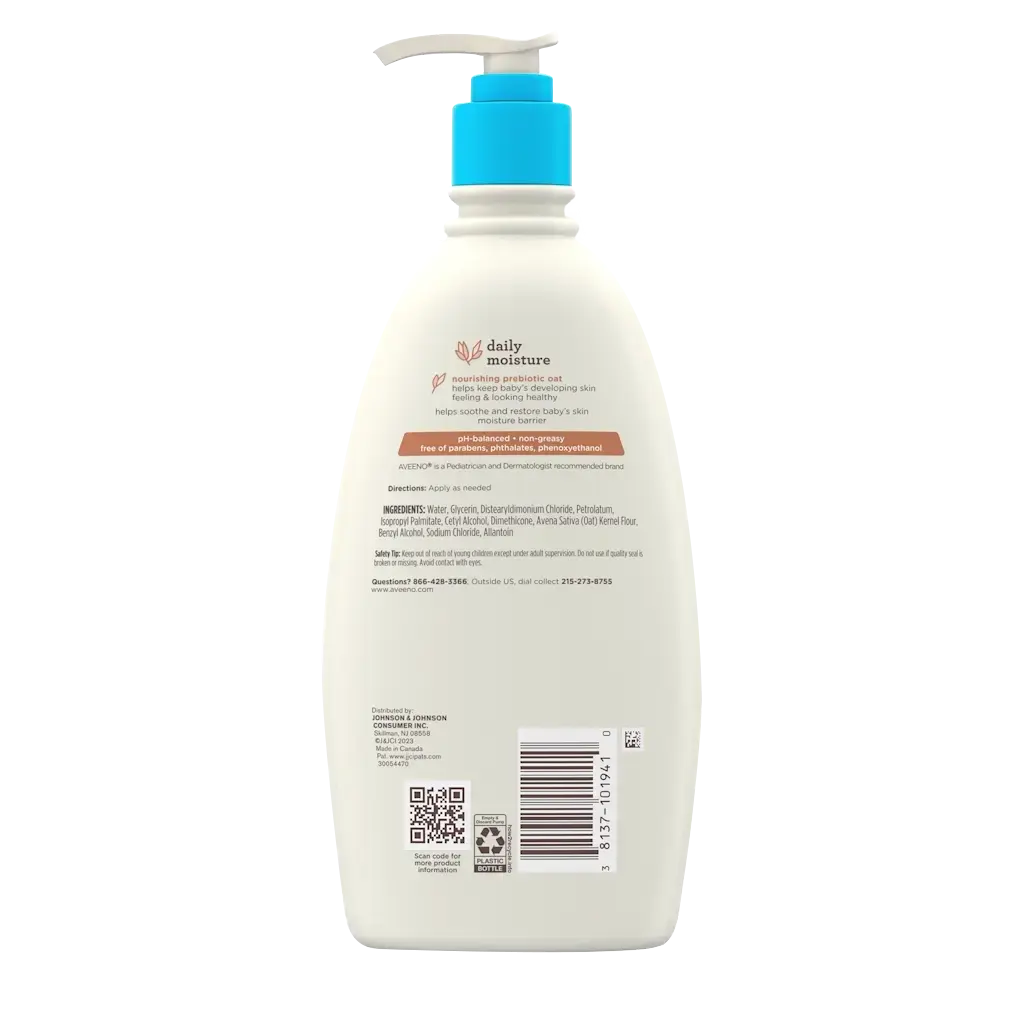 Gentle on your baby’s sensitive skin, this nourishing baby lotion moisturizes for a full 24 hours and soothes baby’s skin from the first use. Enriched with oat flour, glycerin, and dimethicone, it strengthens skin’s natural moisture barrier and temporarily protects chafed, chapped, or cracked skin. Our hypoallergenic baby lotion helps protect from the drying effects of wind and cold weather, while also helping keep baby’s skin soft and smooth.