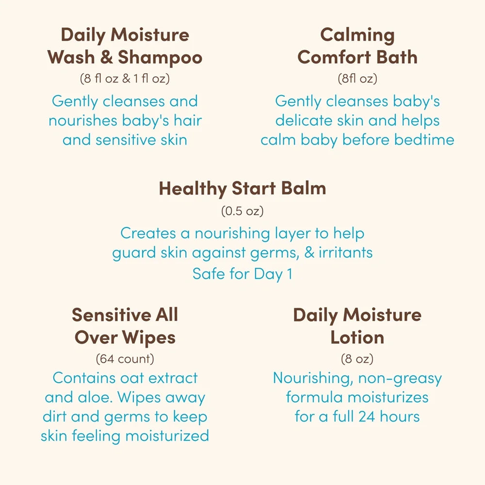 Calm, moisturize and cleanse your baby. This gift set for parents-to-be contains four baby skincare essentials specially formulated with oats to be gentle on baby's delicate skin.