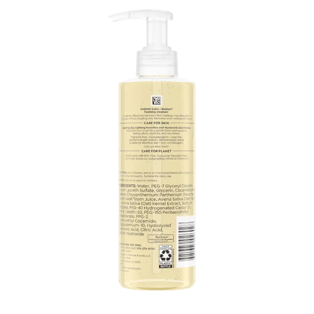 Transform your cleansing routine with our gel-to-foam cleanser, expertly designed to effortlessly remove makeup—even stubborn waterproof mascara—while eliminating dirt, impurities, and excess oil without stripping your skin. This daily cleanser leaves your skin feeling clean, soothed, and nourished. Infused with a soothing blend of oat, calming feverfew, and hyaluronic acid, our gentle foaming formula leaves skin feeling moisturized and provides comfort for sensitive skin. Experience the perfect balance of deep cleansing and skin-loving care.