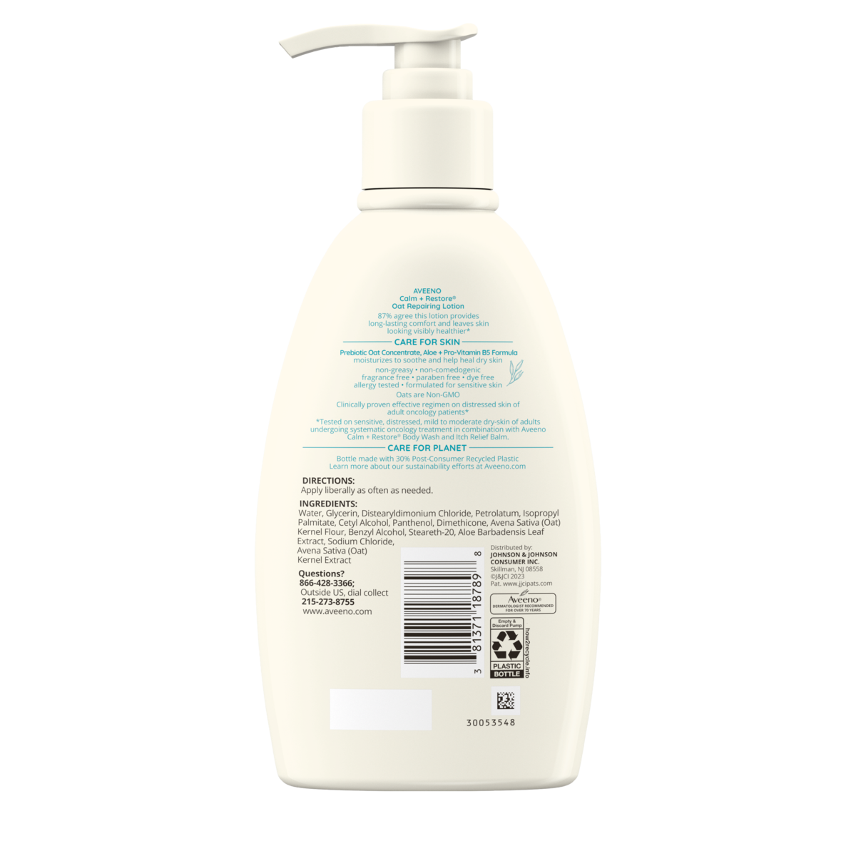 Prebiotic Oat Concentrate, Aloe, & Pro- Vitamin B5 Formula moisturizes to soothe and help heal dry skin.