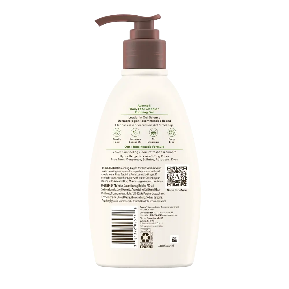 Revitalize your skincare routine with our daily foaming cleanser, expertly designed to remove excess oil, dirt, and makeup from your face. This gentle formula is perfect for everyday use, leaving your skin feeling clean, refreshed, and smooth. Our soap and fragrance-free gel cleanser is enriched with oat and niacinamide, ensuring your skin remains clean, smooth and refreshed. Plus, it effectively cleanses without disrupting your skin's natural moisture barrier or clogging pores. Enjoy a fresh, smooth complexion with every wash.