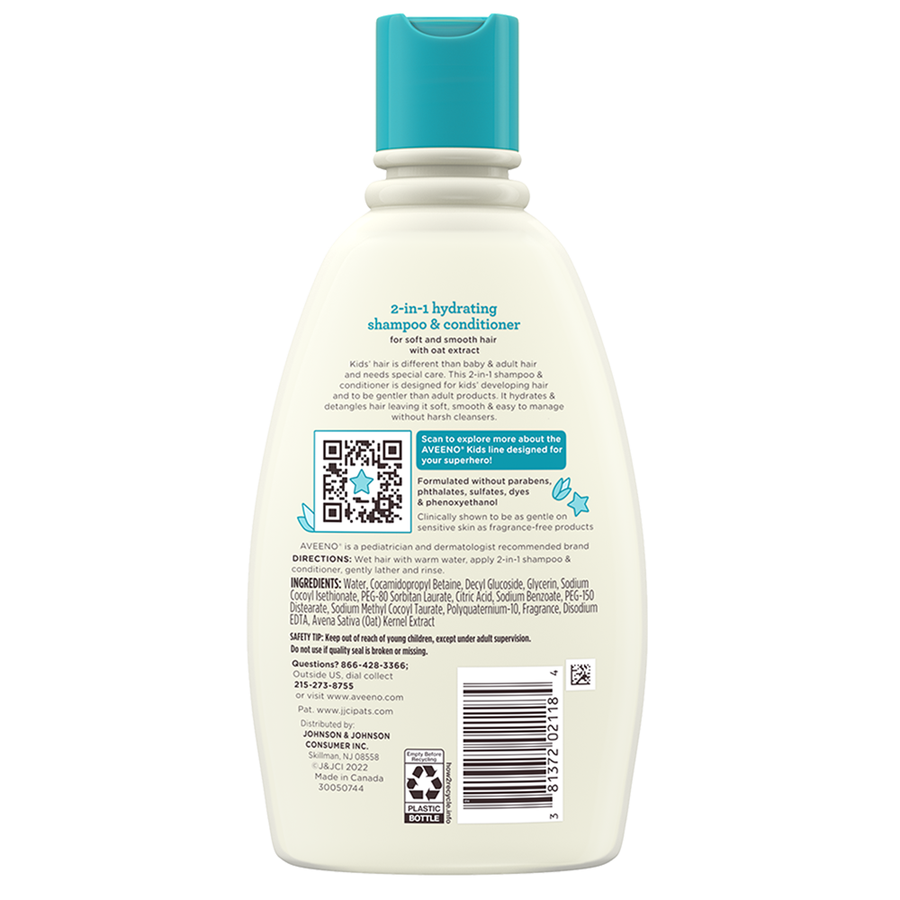 Gently clean, condition & detangle your child’s hair. This 2-in-1 kids’ hypoallergenic shampoo & conditioner with oat extract hydrates hair & leaves it soft, smooth & easy to manage.