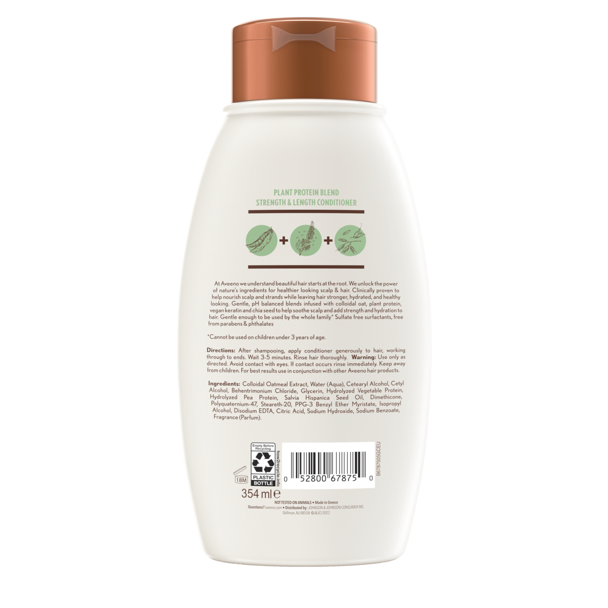 Keep hair growing strong with Aveeno® Strength & Length Plant Protein Blend Conditioner. From cleansing to deep nourishment to frizz control, our anti frizz conditioner provides all the benefits you want but in a vegan formula.