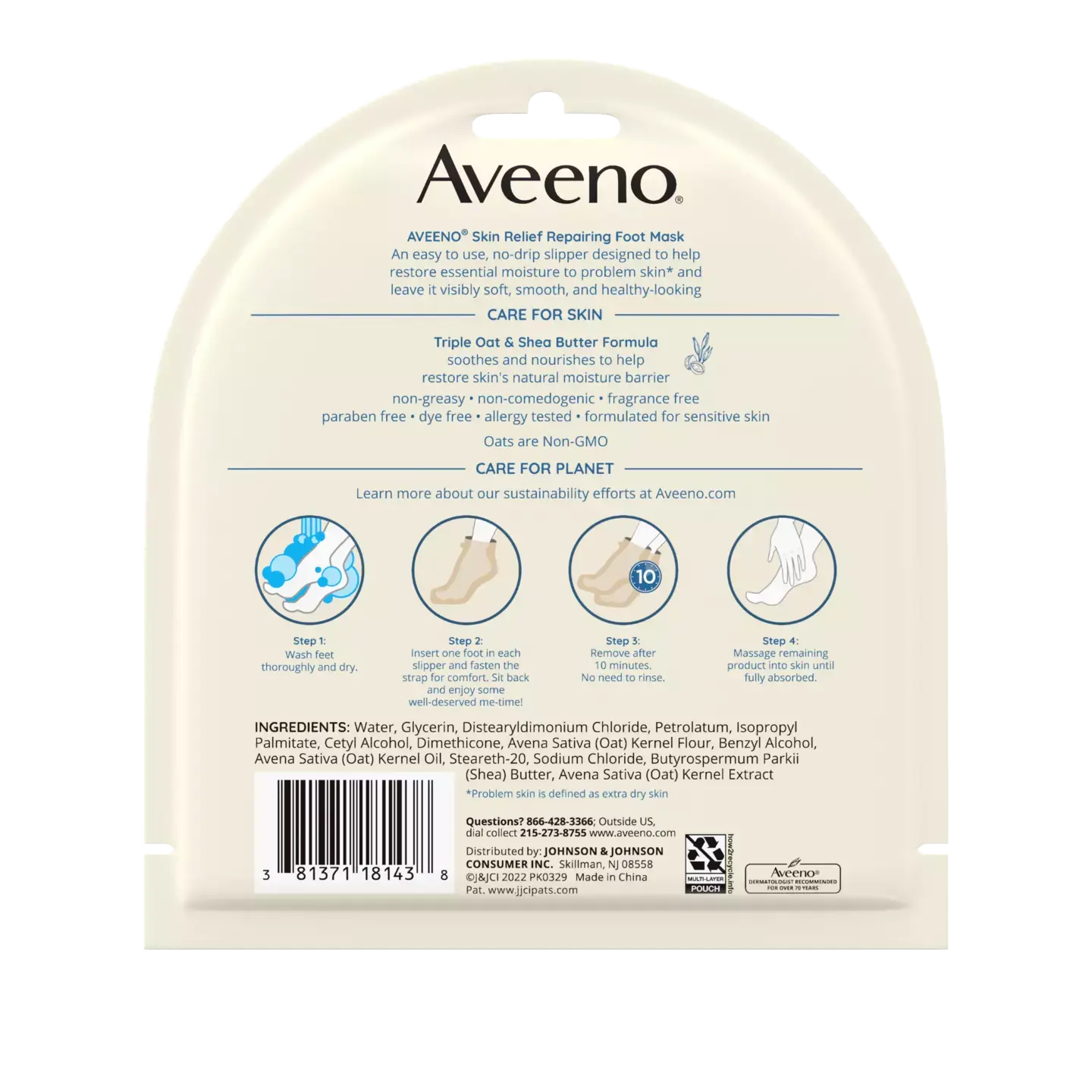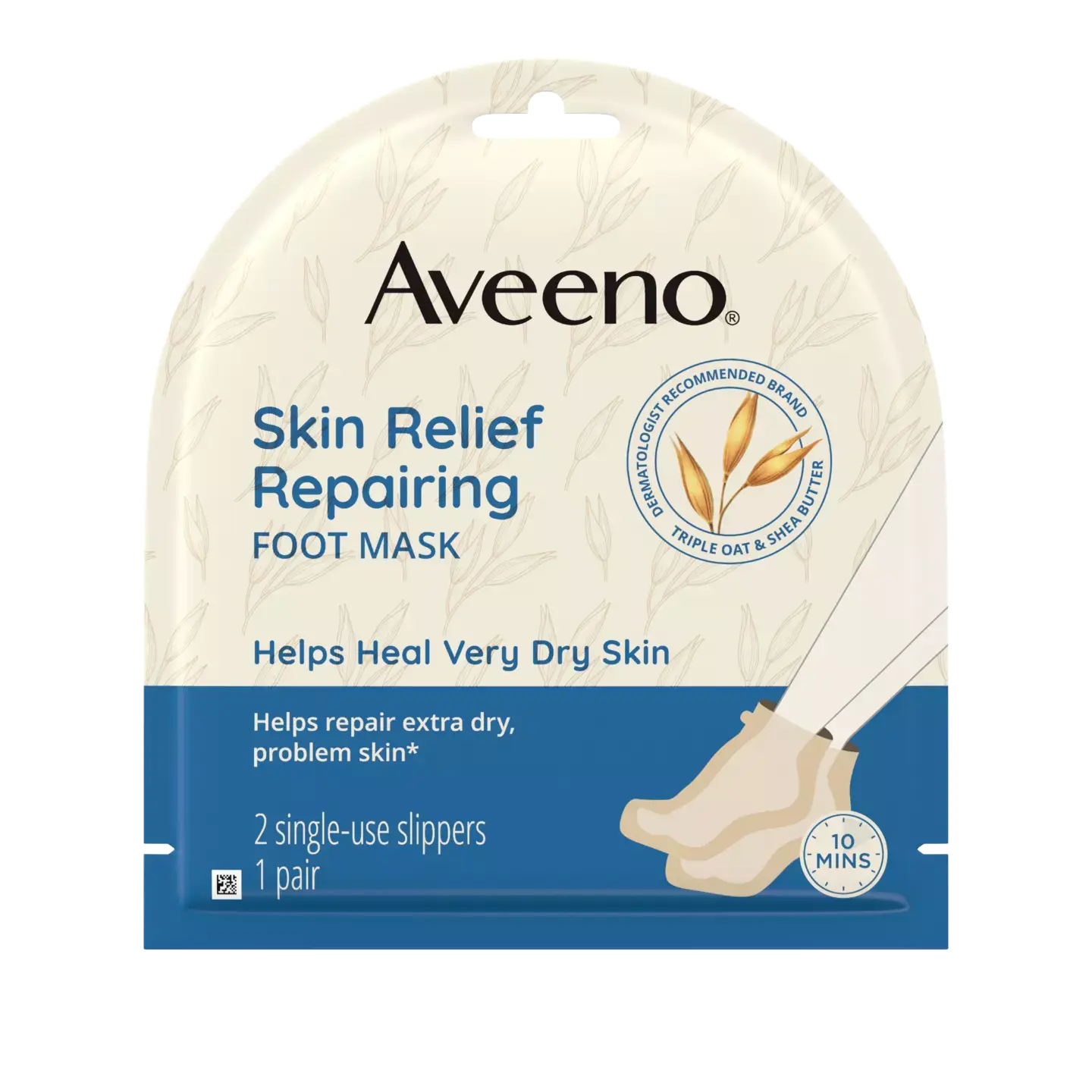 Repair and relieve dry, tired feet with these hydrating foot masks. They help repair extra-dry skin to leave your feet looking softer and feeling smoother. Aveeno® Skin Relief Repairing Foot Masks are easy to use. Just wash and dry your feet, slip on the foot mask for 10 minutes, and remove.