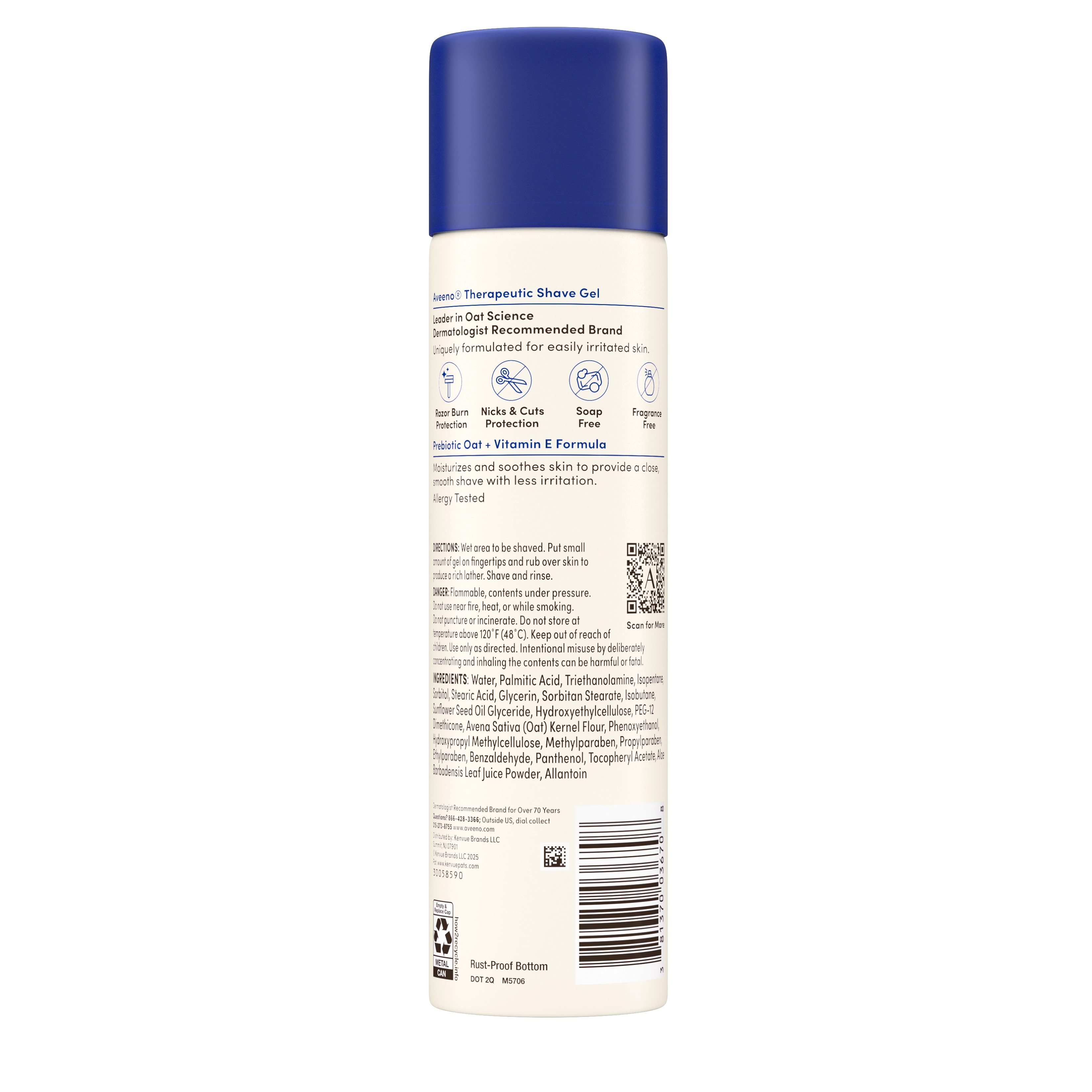 Aveeno® Therapeutic Shave Gel with Oat and Vitamin E helps hydrate and helps prevent shaving irritation. Formulated to be gentle for dry skin, this lubricating shave gel provides a close, smooth shave with less irritation and helps to prevent razor bumps, razor burn, nicks, and cuts.